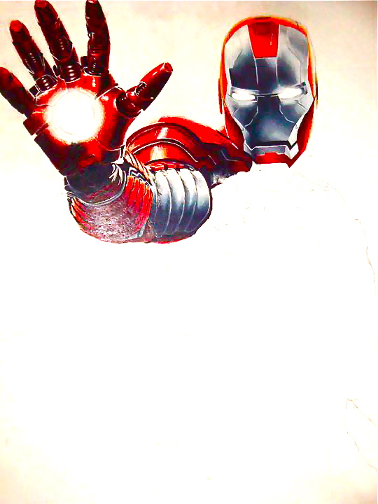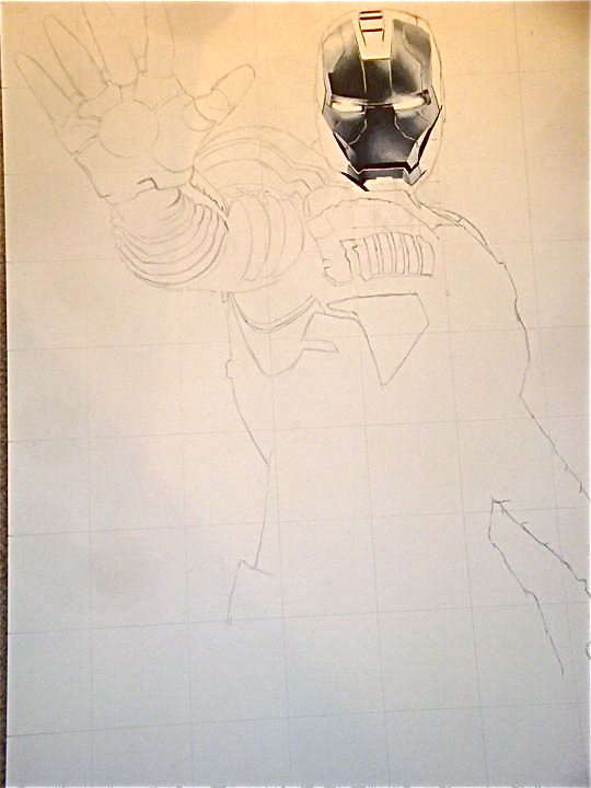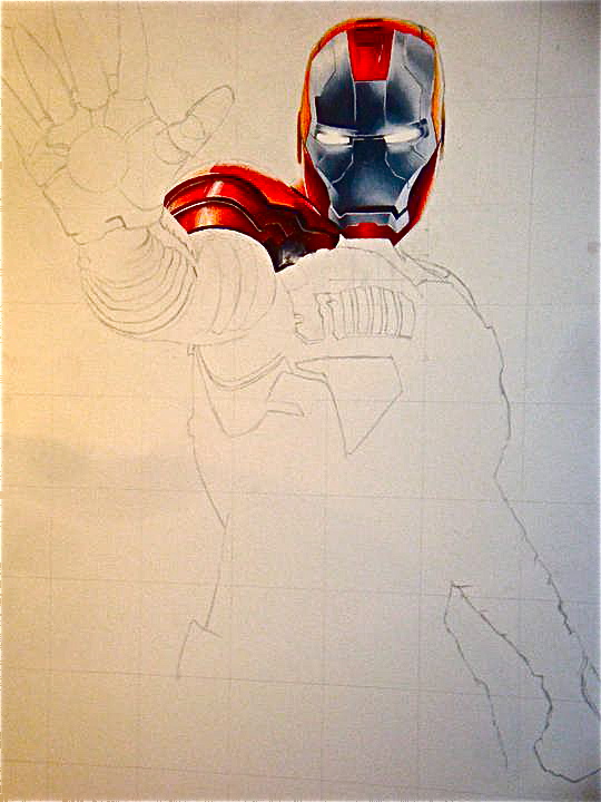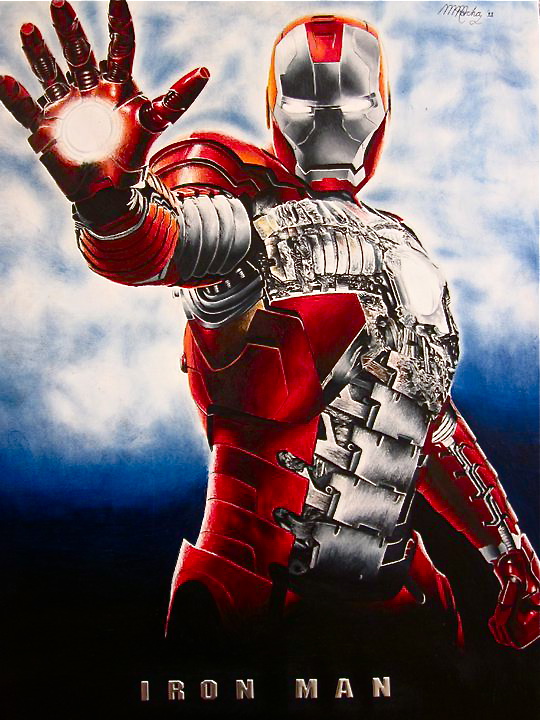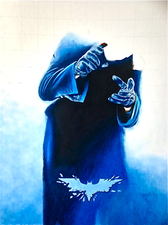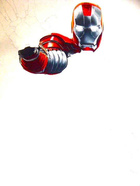 One of the most fascinating steps in completing both Dark Knight and Iron Man was the foggy background effect. I simply used cotton and rubbed Prismacolor led on the poster board paper.