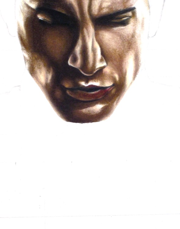 The beginning stages of Captain America! One of the most challenging faces to color so far and using a variety of skin color pencils. An enjoyable new challenge and going back into full a different tint mode. Not that I have not worked with this type of shading within the last year; but delighted with the variety of tones of beige .