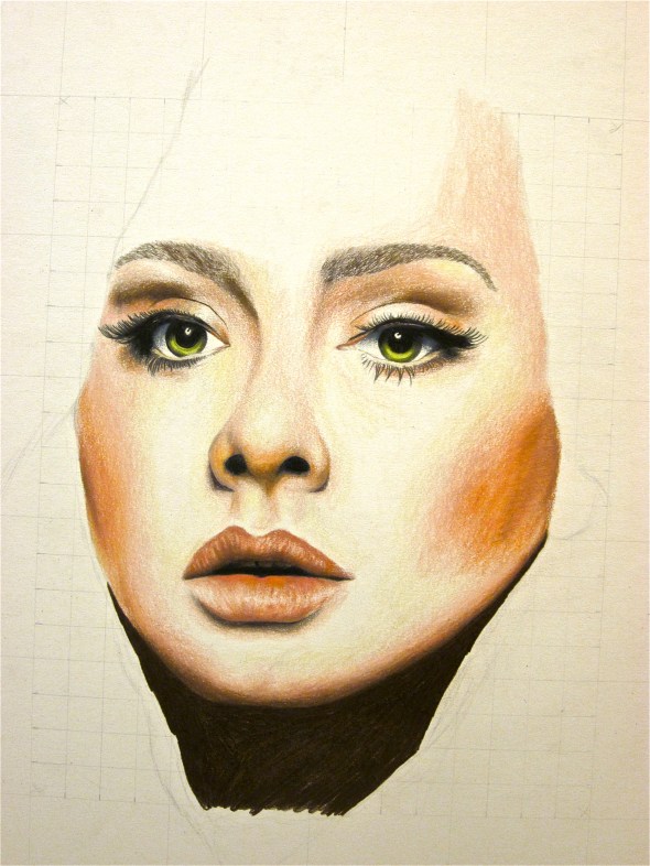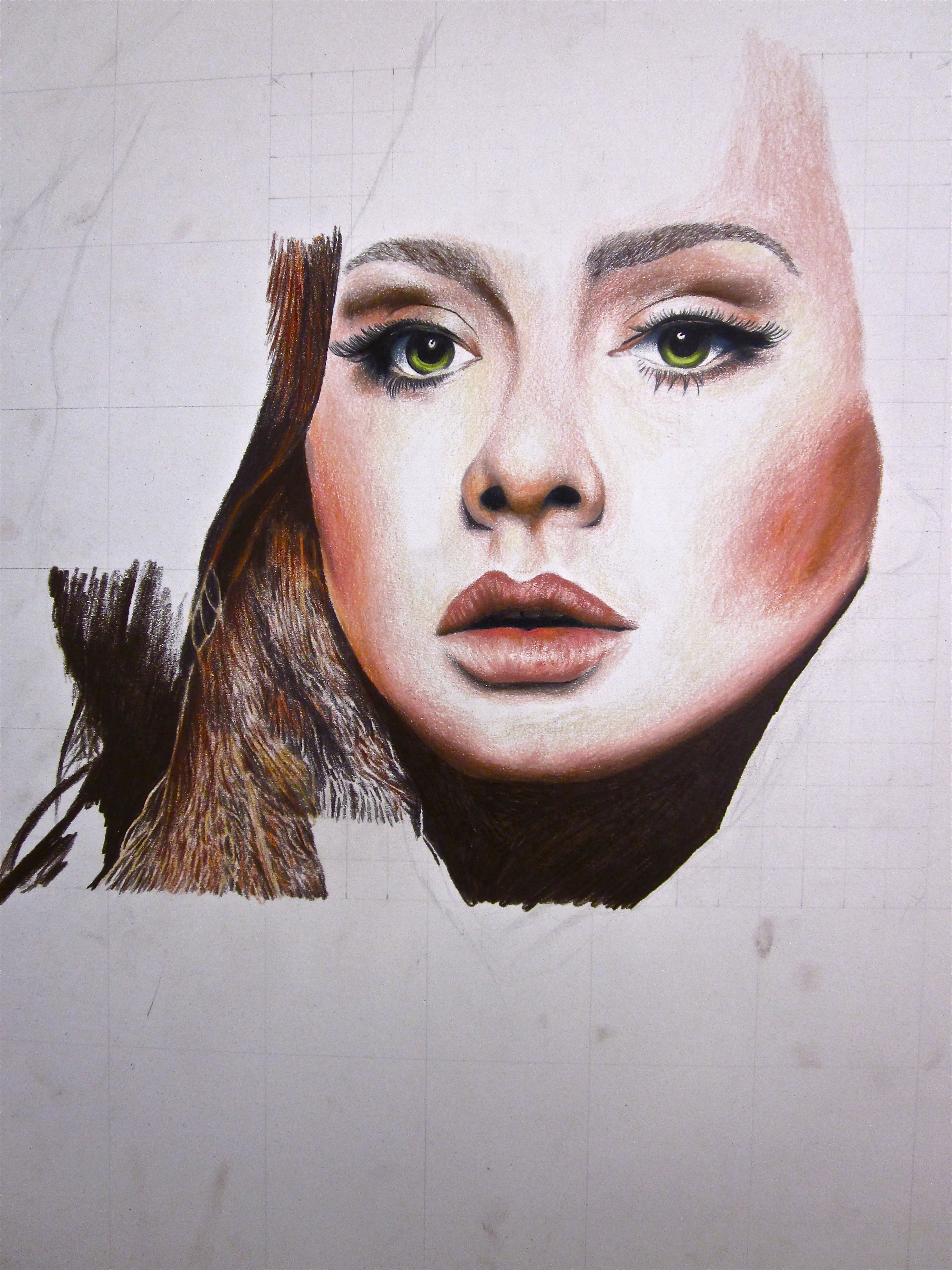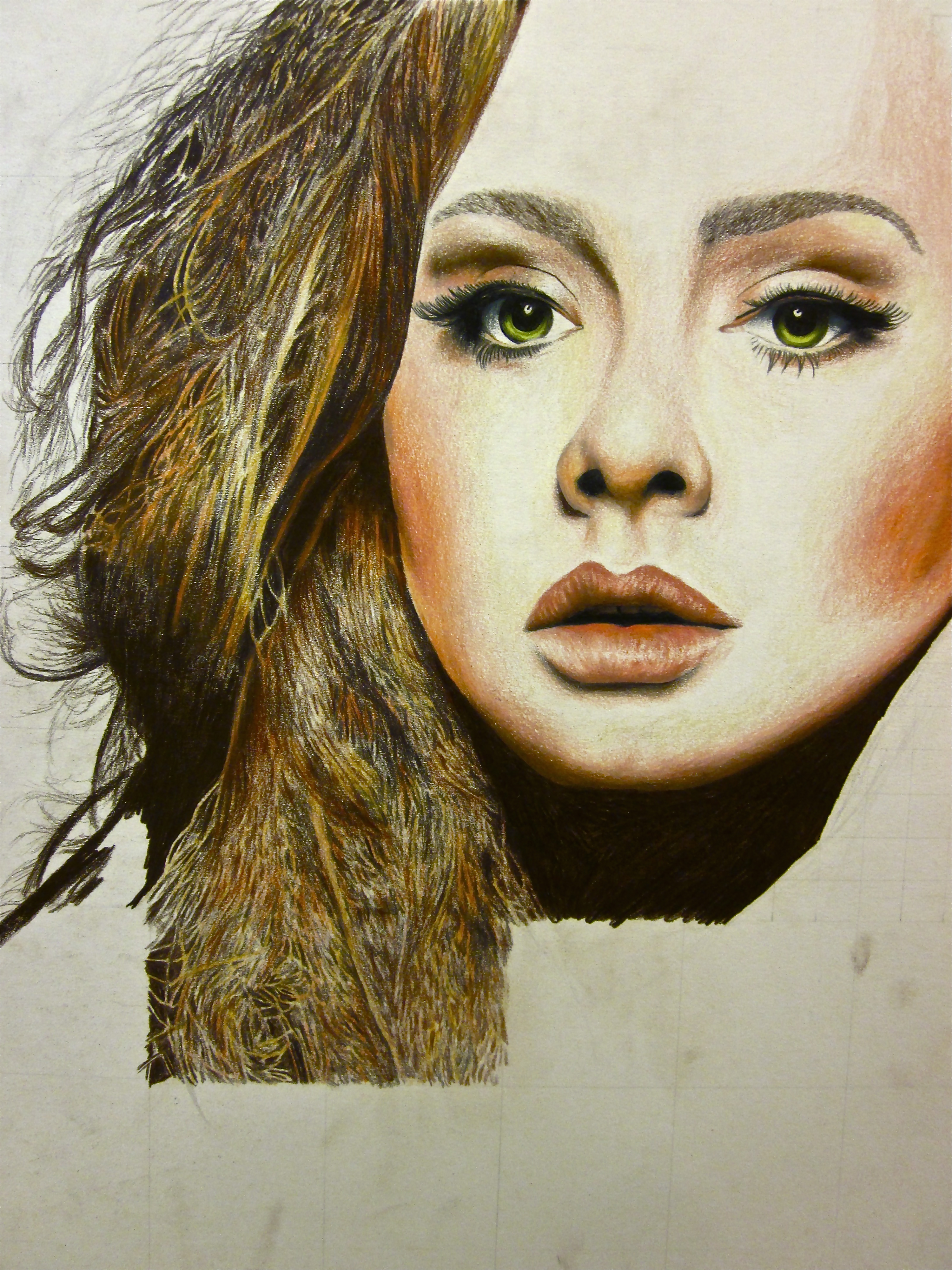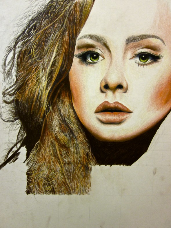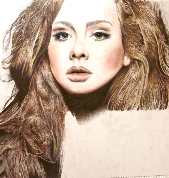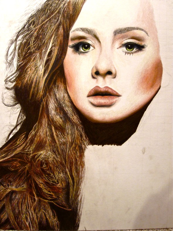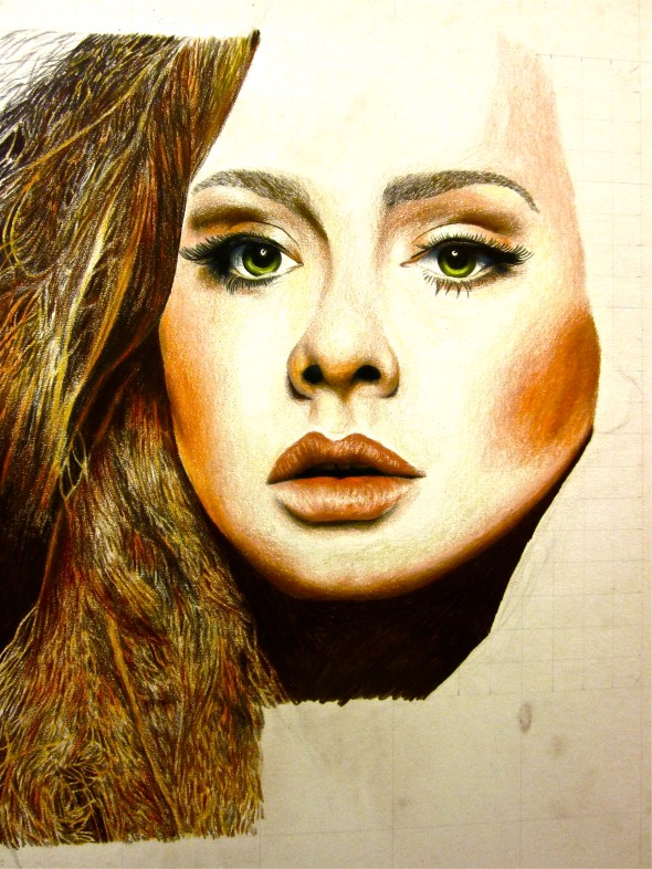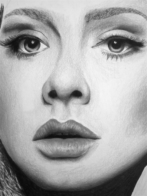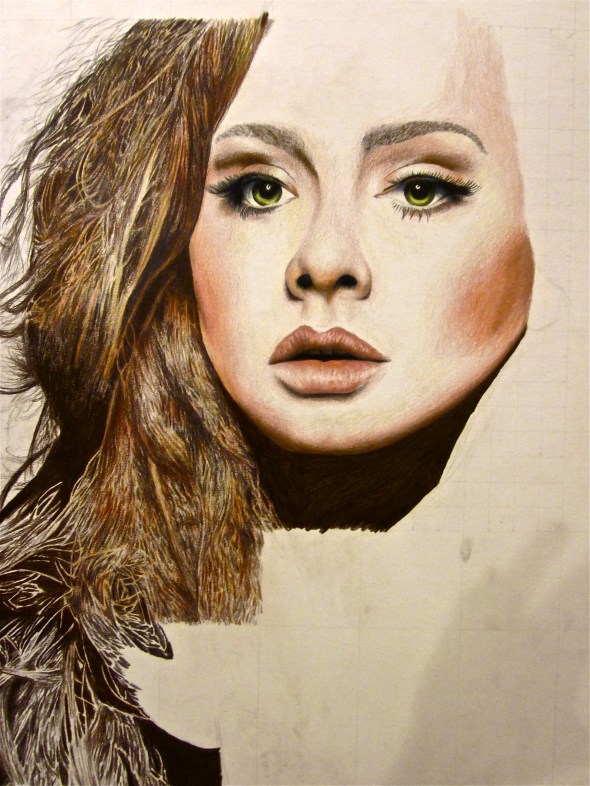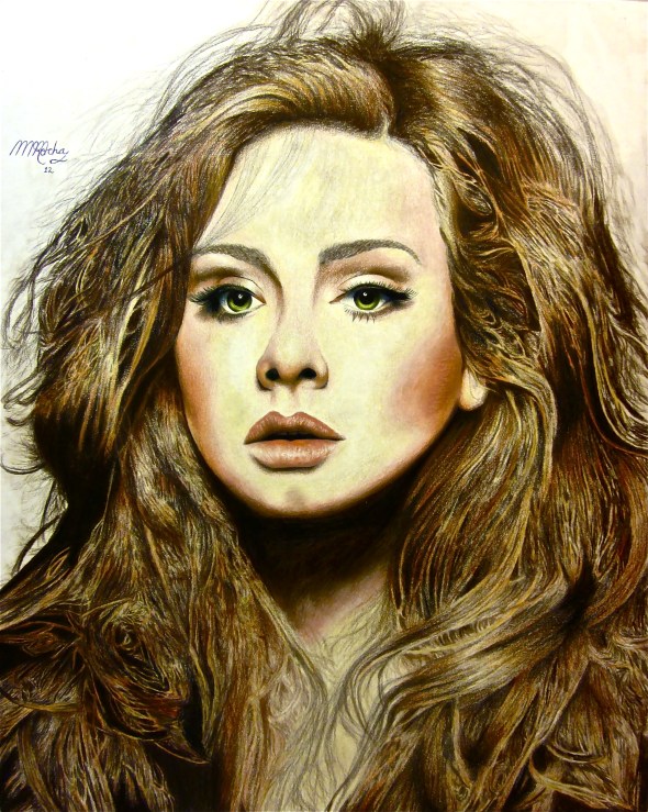 When I first heard that beautiful soulful voice I was astonished with her toning and volume. I was not only impressed with her singing; but listening to “Rolling in the deep” simultaneously with the video I observed how the refinement of art and music continue merging into one another. There was nothing that I could overlook upon all the aspects of the video as it does include elegance and force; both artistically and musically. She has the heart and the soul that separates her from other performers. As her inspiration to unleashed 21 displays all passion from the heart. The heart that is; that I took to draw Adele freehand. I draw with my hands; but most of all from the heart with such an emotion that I can not described.