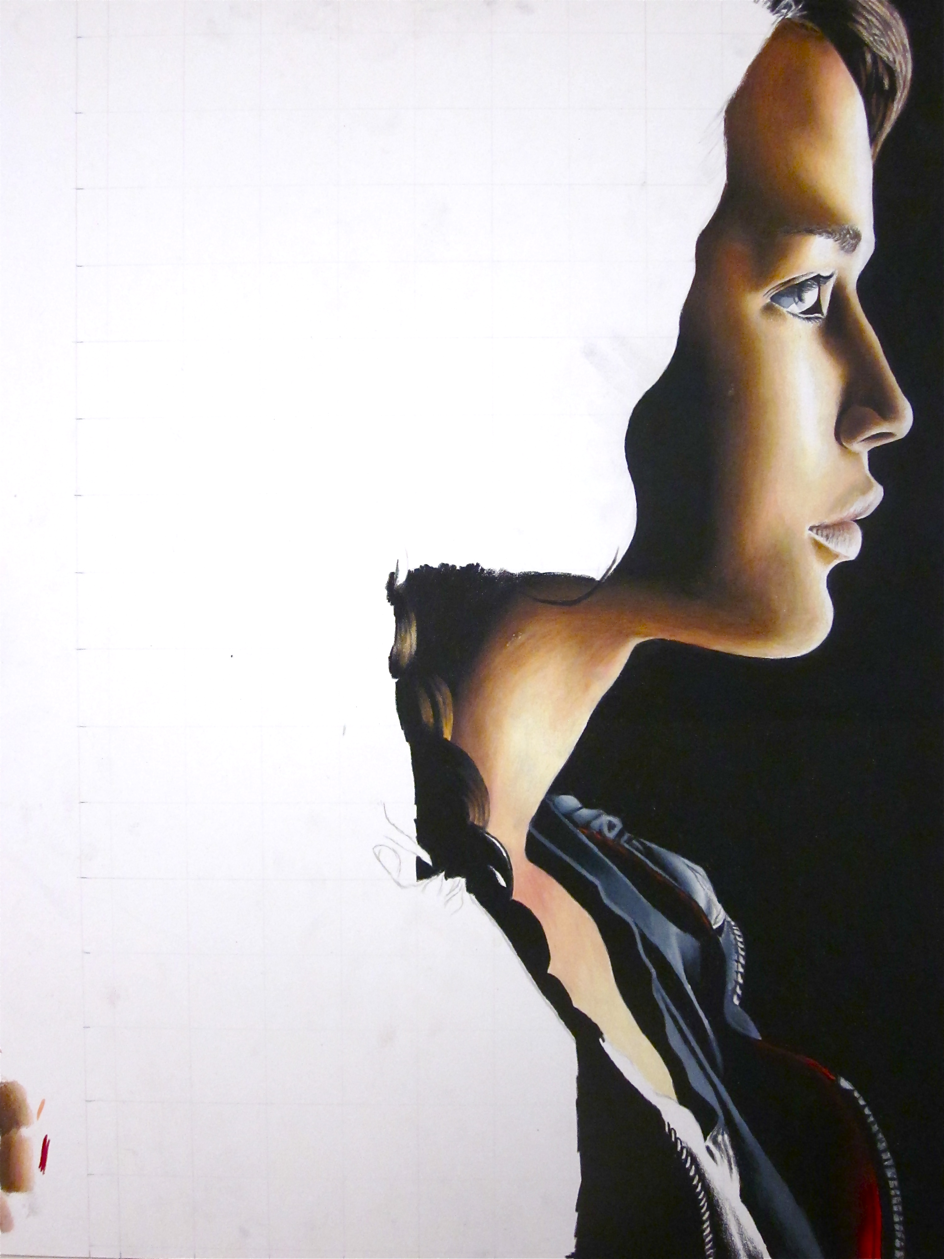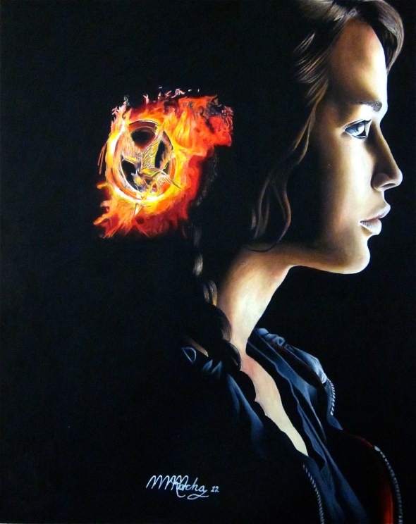 Hungry for more? That’s exactly the feeling I’ve got when I read and saw this fascinating motion picture. It’s definitely going to be one of the movies of the year. The book was so addicting that I couldn’t put it down. Full of detail and fascinating suspense I could define it as a book that it really grabs you. The movie was every bit as good, however. It is very difficult to cover all the details that the book includes into a blockbuster film. As it defines a new meaning for an era where Harry Porter and Twilight left off, The Hunger Games picks up and takes it into a new genre. Kids and adults, males and females are fascinated by it. I was amazed by the book and film that it inspired me to transform Katniss into the world of art. With a pure tone of color pencil I am delivering one of my greatest achievements.