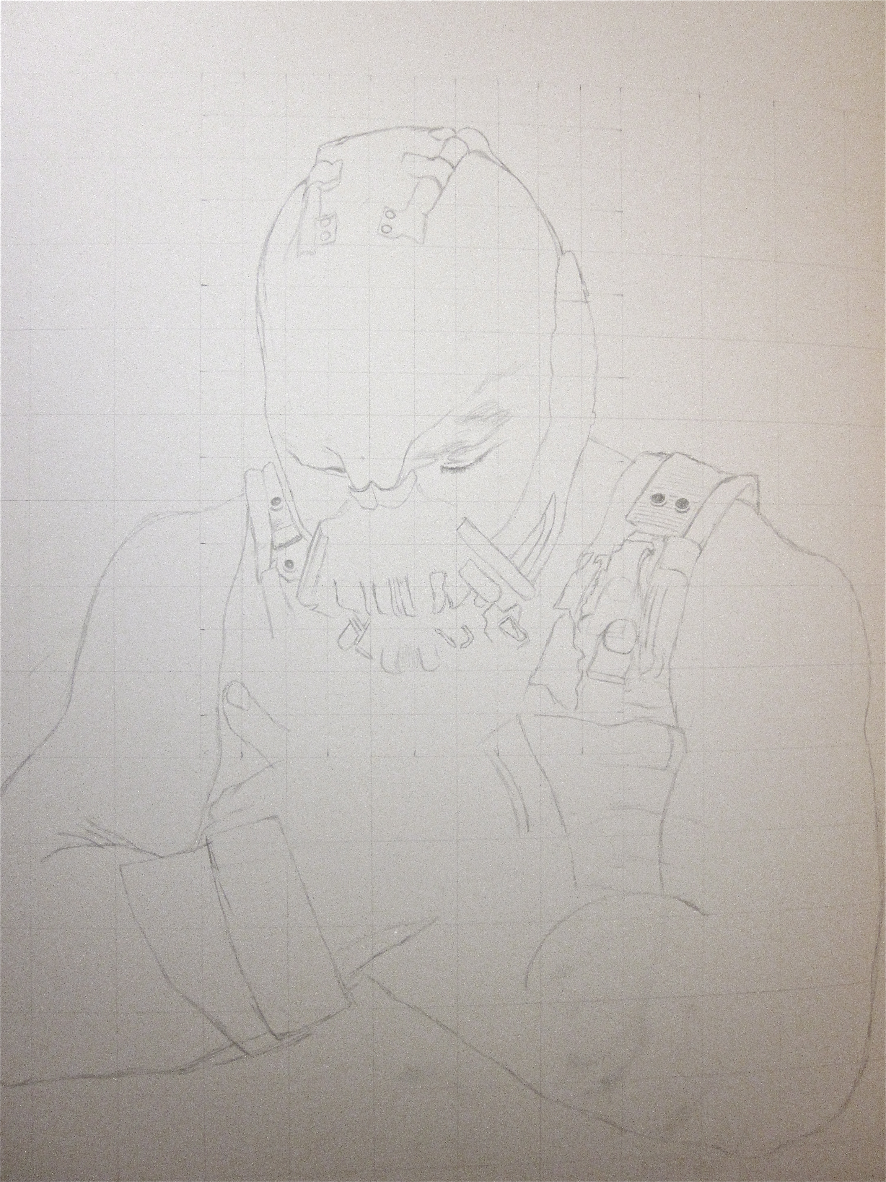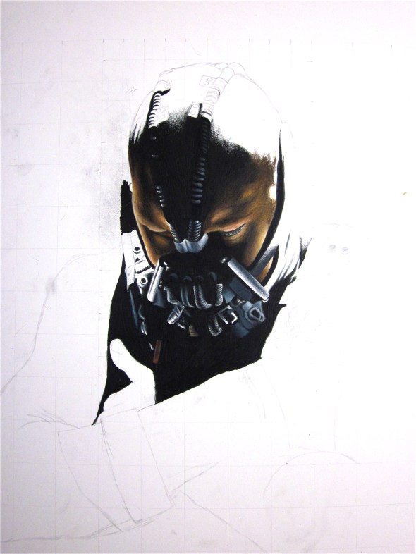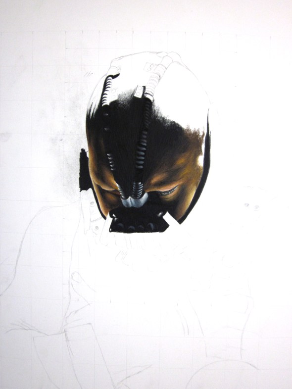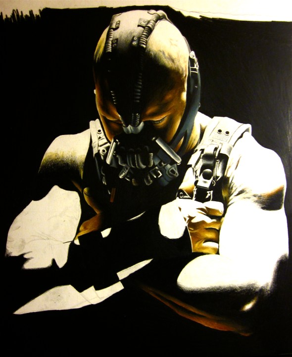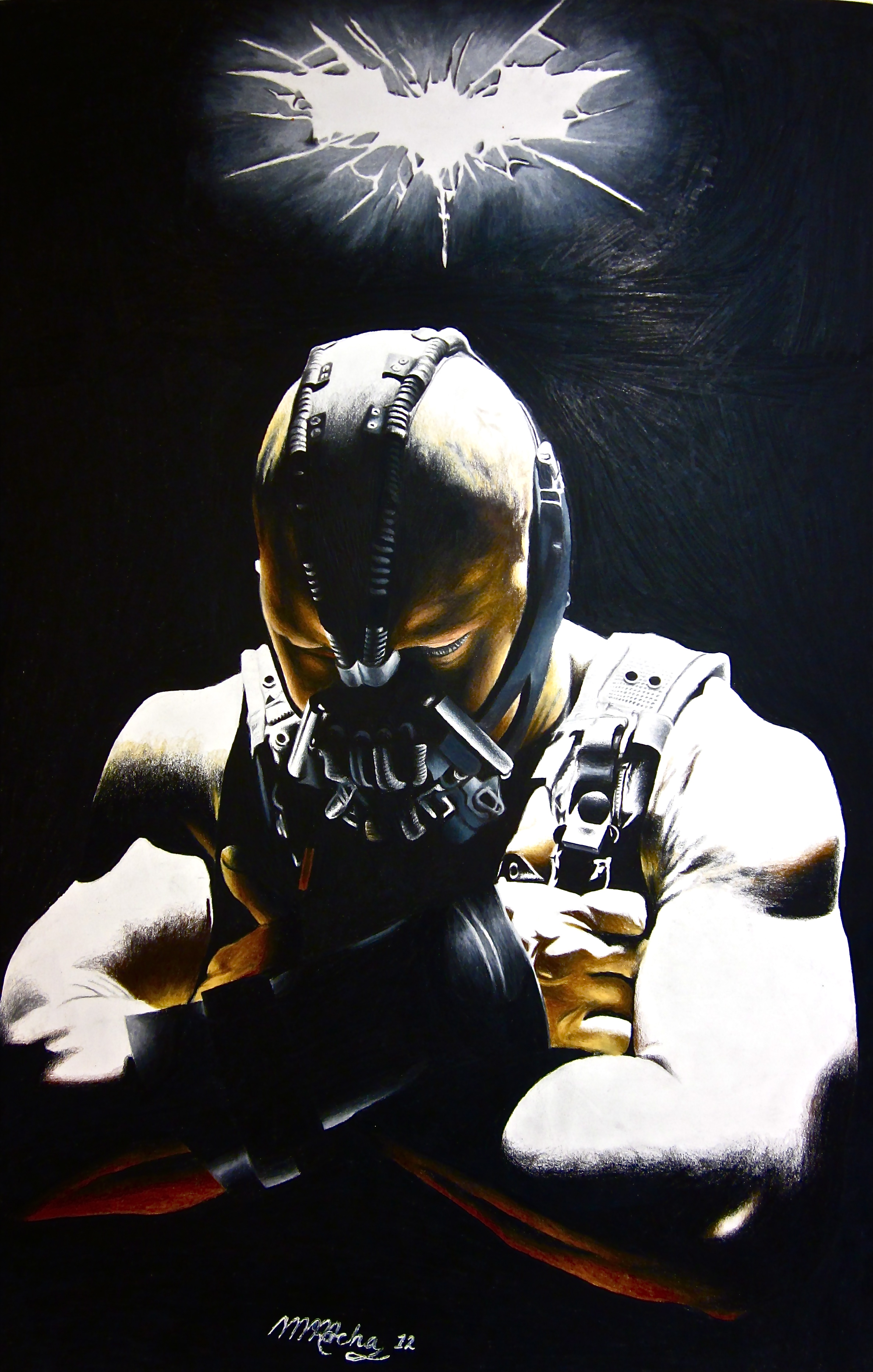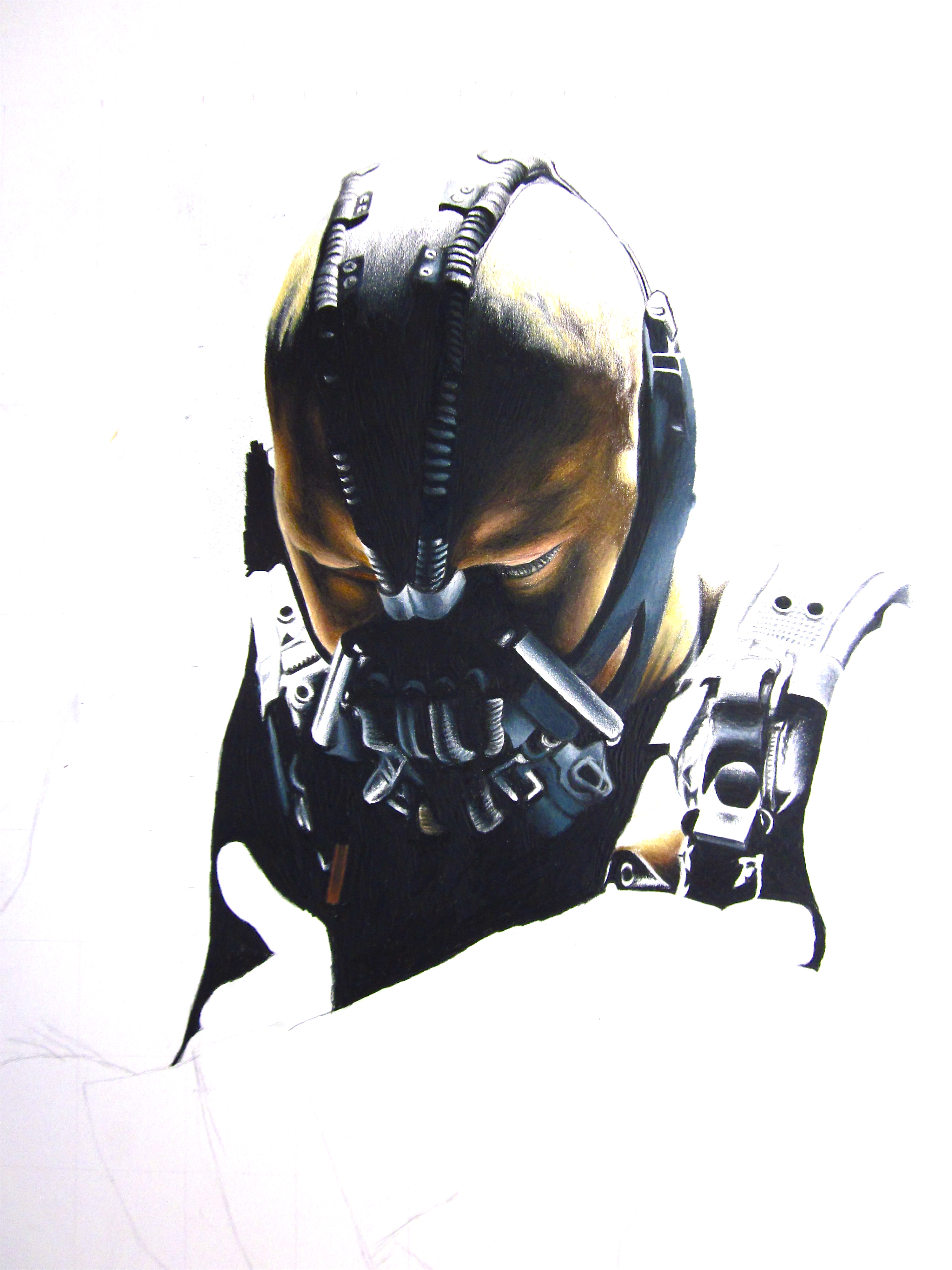 WHEN GOTHAM IS ASHES YOU HAVE MY PERMISSION TO DIE!! One of the biggest anticipated movies of the year!! THE DARK KNIGHT RISES!! Just by watching the 3rd trailer it pumps up your adrenaline!! Inspirational and powerful as it is on film and in art; it caught my attention to draw Bane!! Yes!! He is the villain that catches your eye on this one. A STORM IS COMING!!